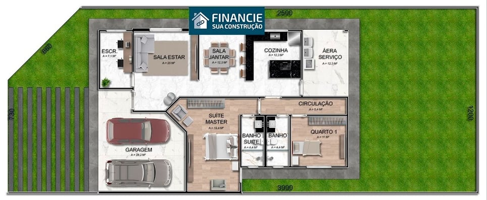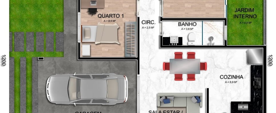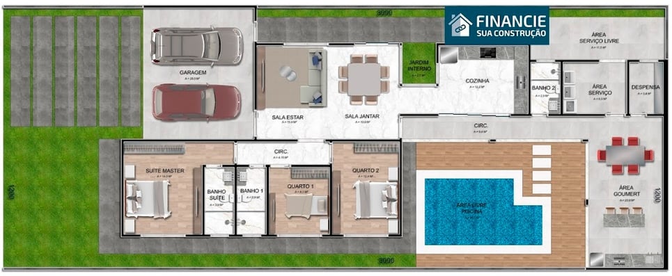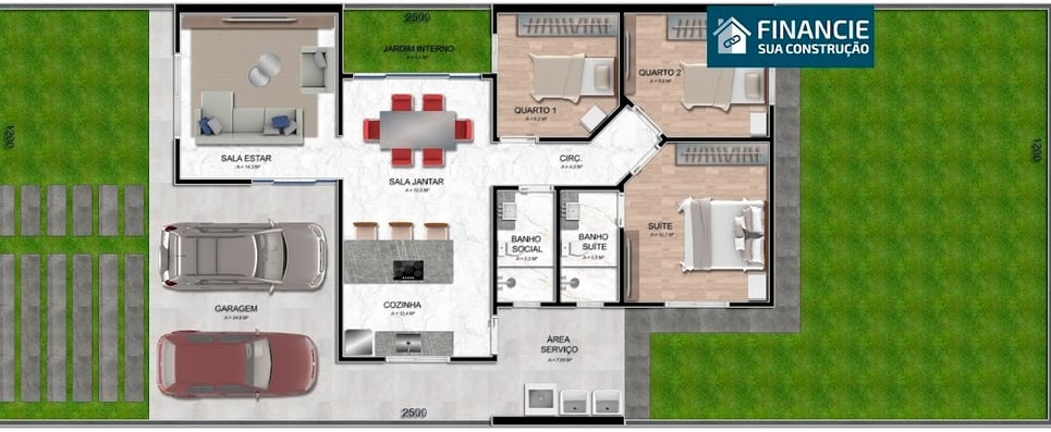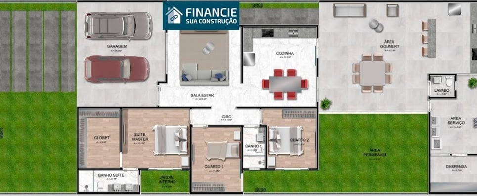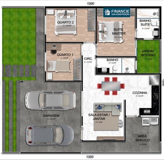 Construindo conosco você terá uma casa no terreno inteiro, nada de meio lote, e isso possibilita você ter um espaço para lazer e para futuras ampliações.